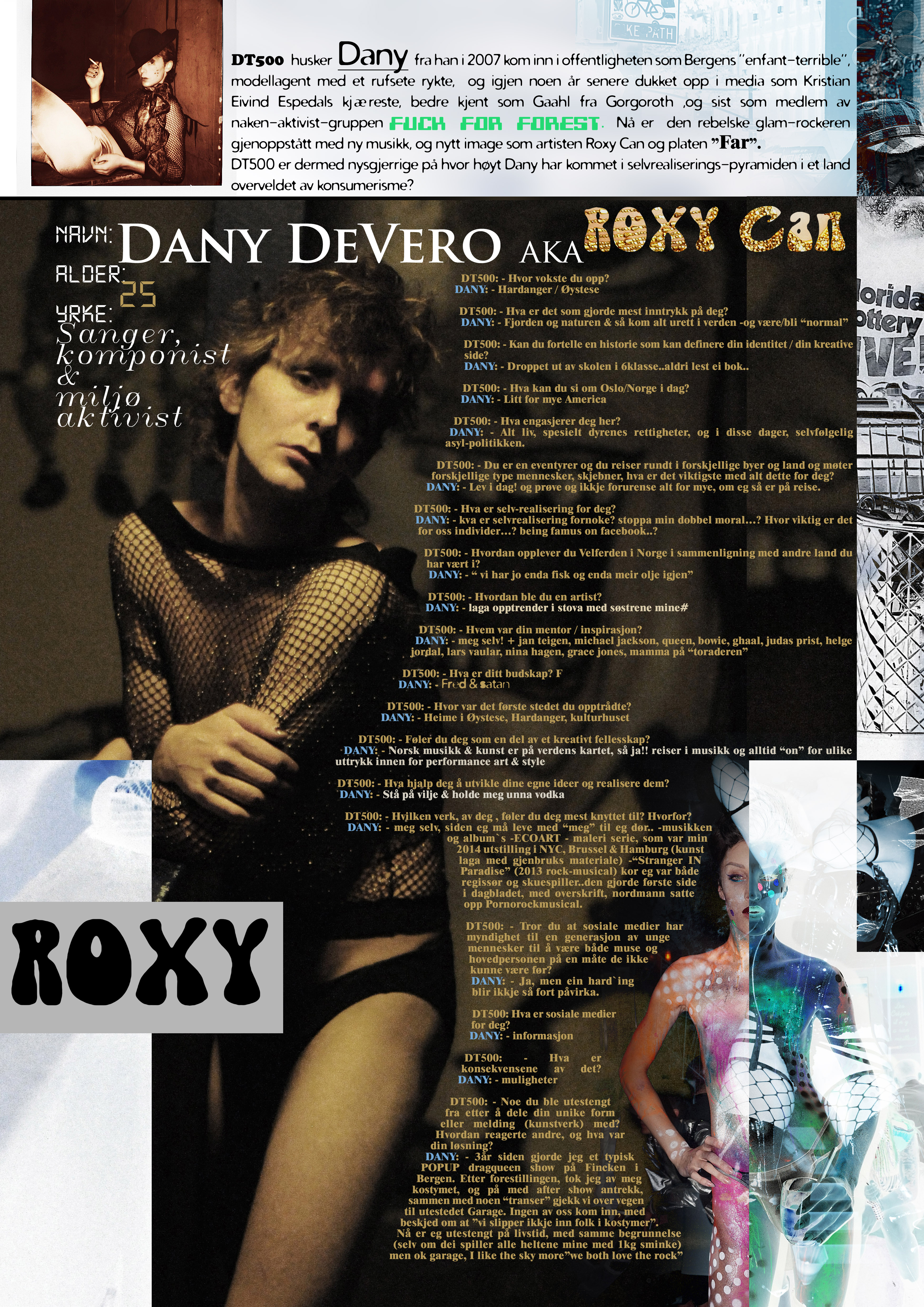 DT500MAG HUSKER DANY FRA DA HAN I 2007 SPRATT INN I OFFENTLIGHETEN SOM BERGENS ”ENFANT-TERRIBLE”, EN MODELLAGENT MED RUFSETE RYKTE. NOEN ÅR SENERE DUKKET HAN OPP I MEDIA SOM KRISTIAN EIVIND ESPEDALS KJÆRESTE, BEDRE KJENT SOM GAAHL FRA GORGOROTH, OG SIST VI SÅ HAM VAR HAN MEDLEM AV SEX-AKTIVIST-GRUPPEN FUCK FOR FOREST.