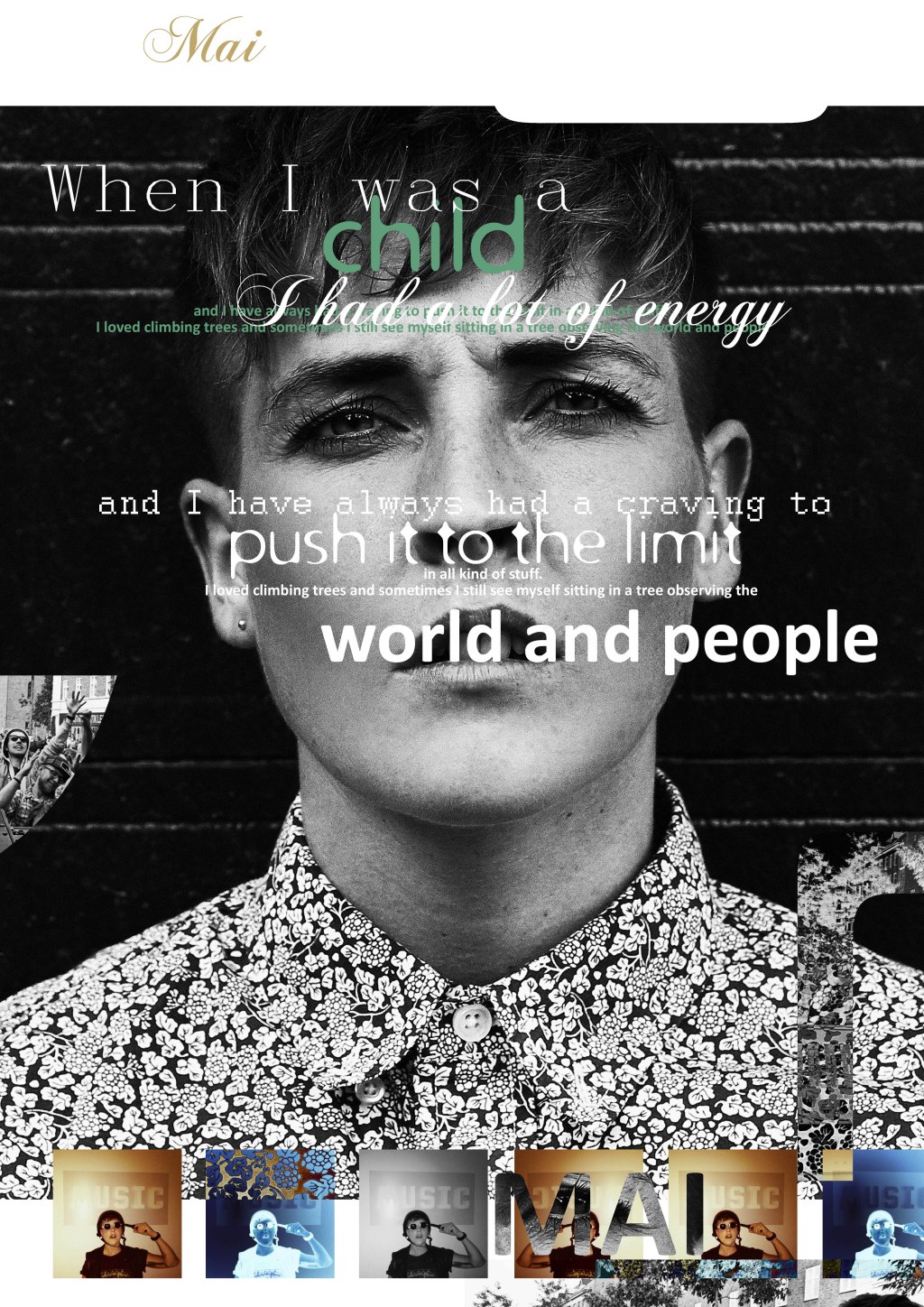 MAI: – I am a very loving and open person with an eternal lust for expressing myself. I am actually also a shy person, and I consider myself creative. Even though I am very restless, I like to be alone most of the time; I get stressed if I am among too many people. I recharge when I am alone with my music.
